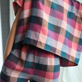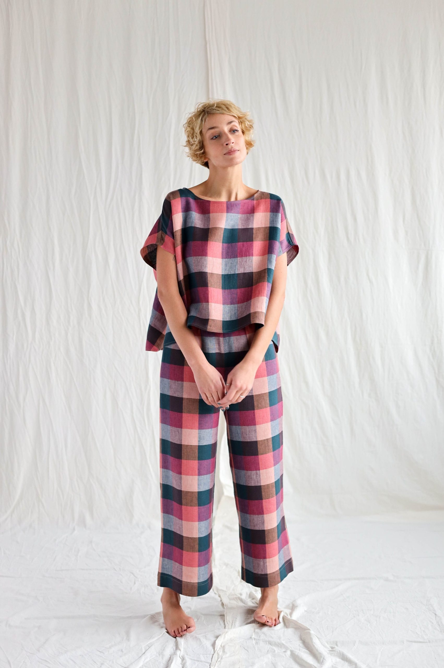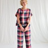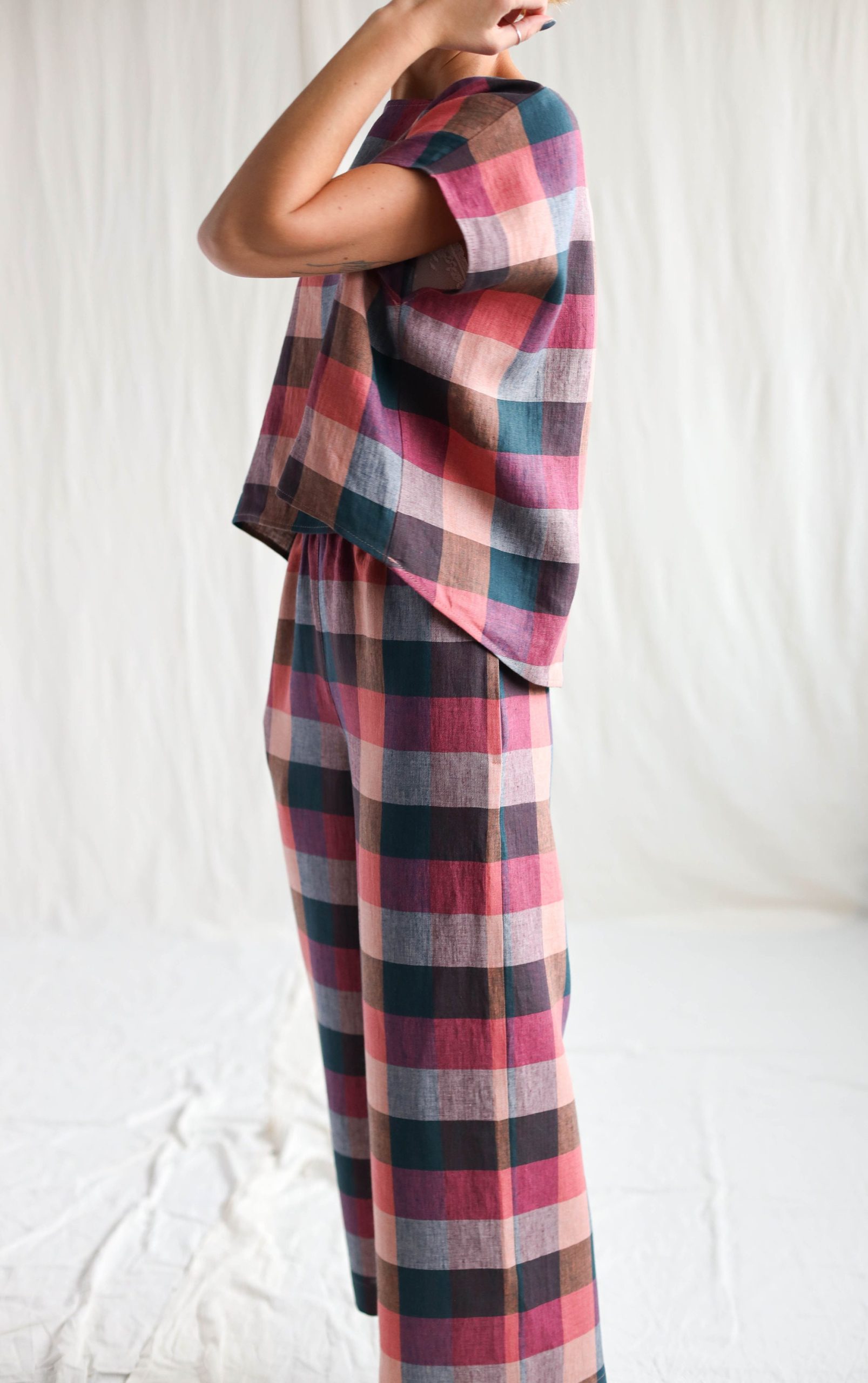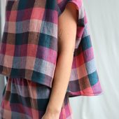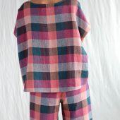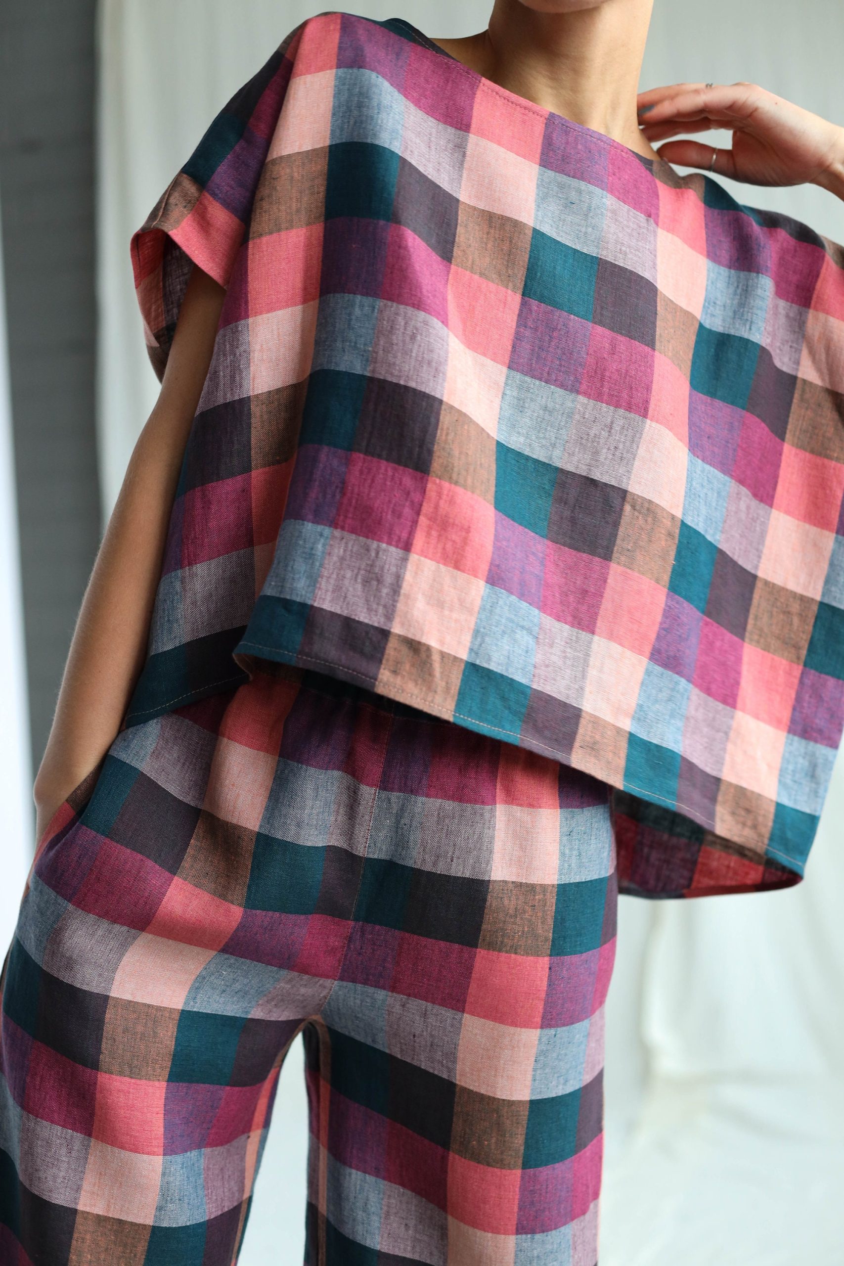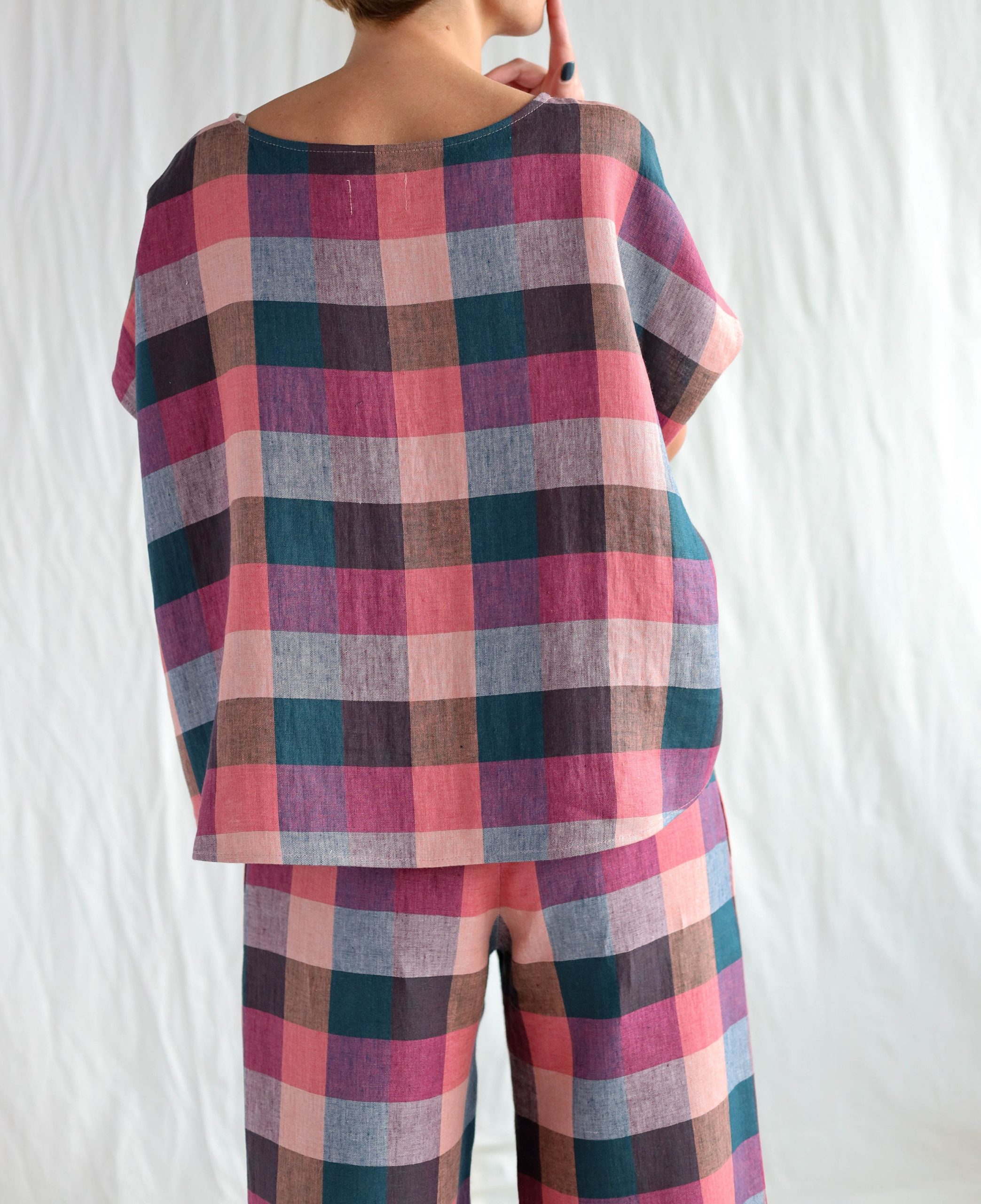 Checkered Linen Oversized Top Offon Clothing
