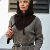 The multifunctional winter accessory is made of semi-woolen yarn.