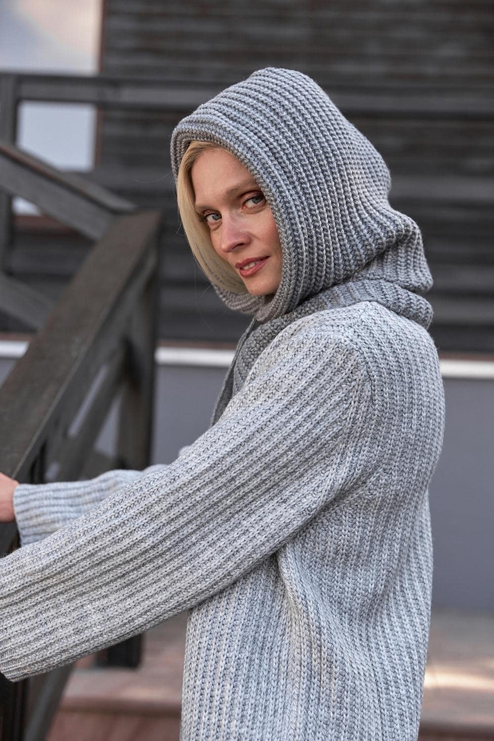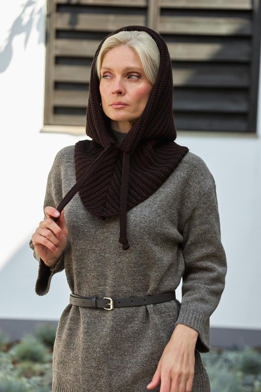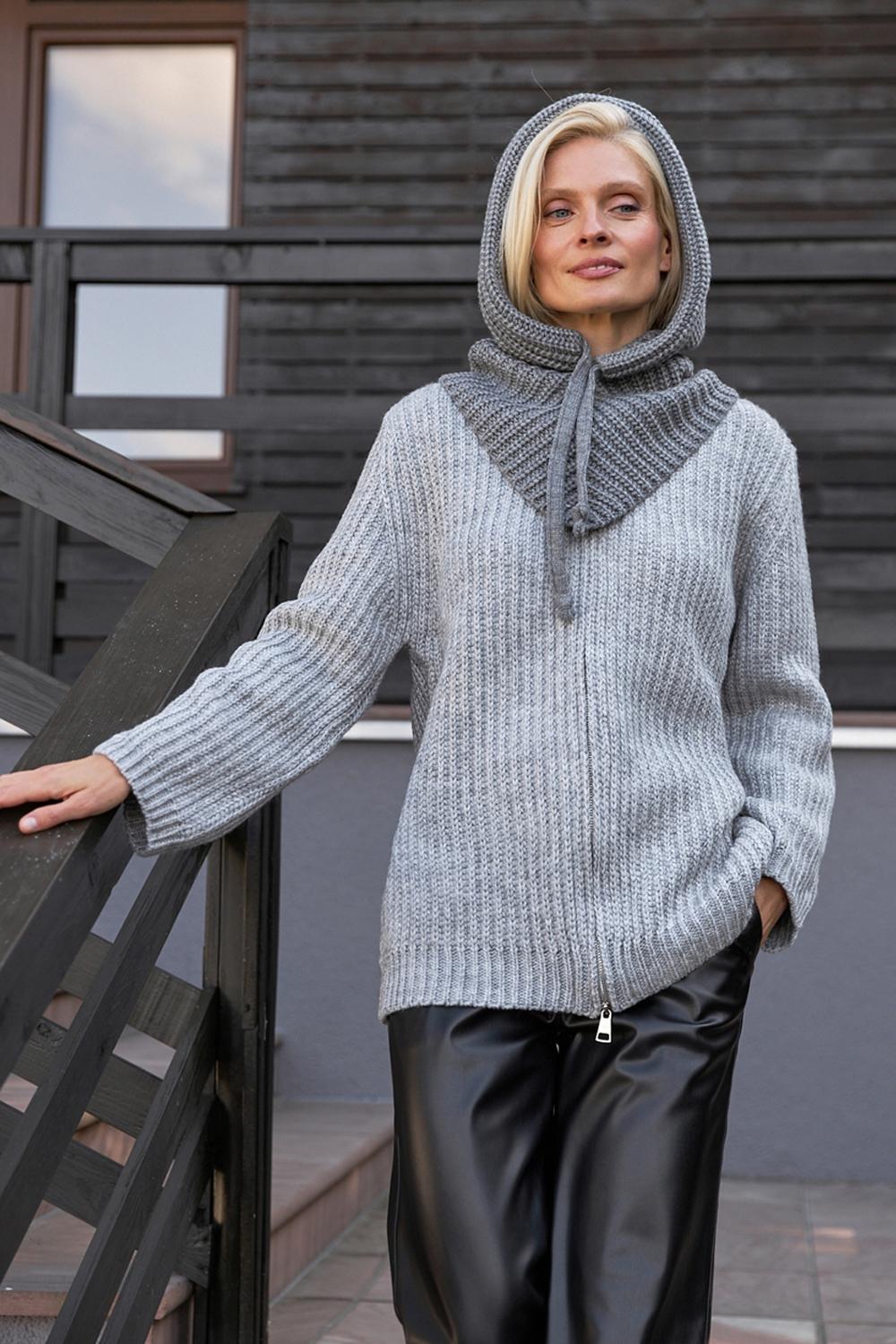 Gray hooded scarf Women snood Knitted hooded scarf