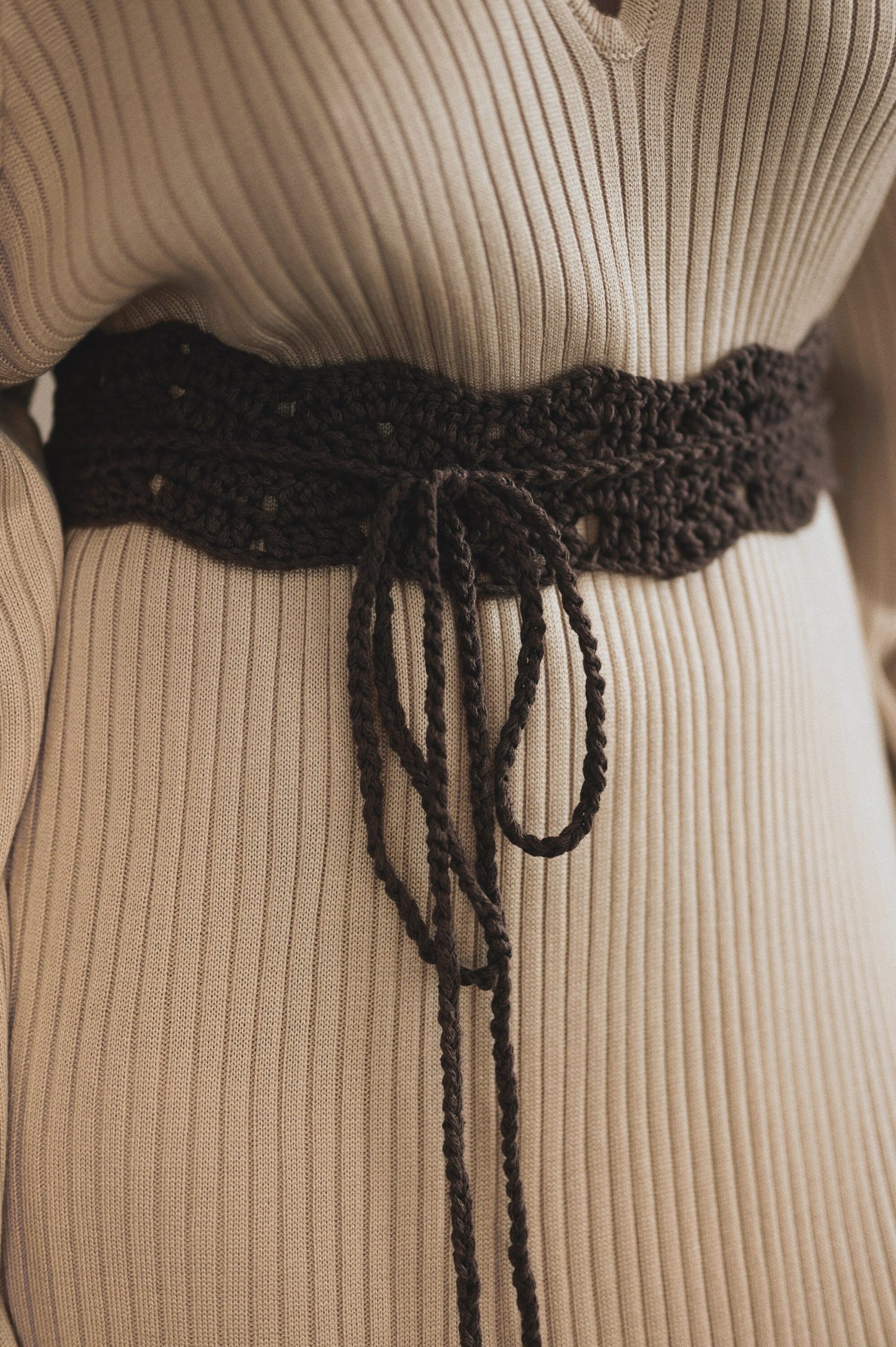 Hand Crochet Cotton Tie Belt: Bohemian Brown Waistband With Tassels