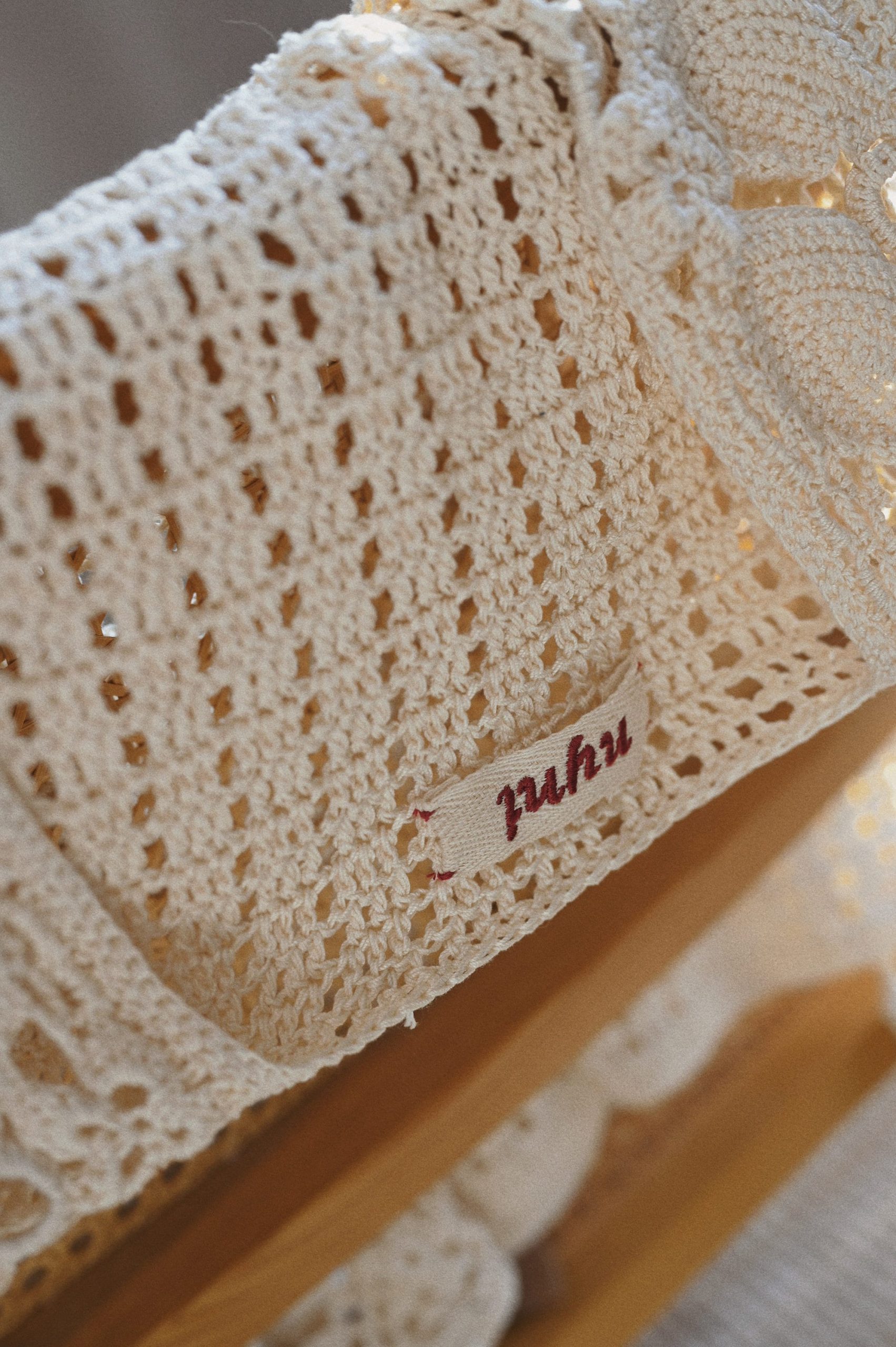 Handknit Cotton Lacy Slipover Vest: Tassel Tie Sleeveless Top