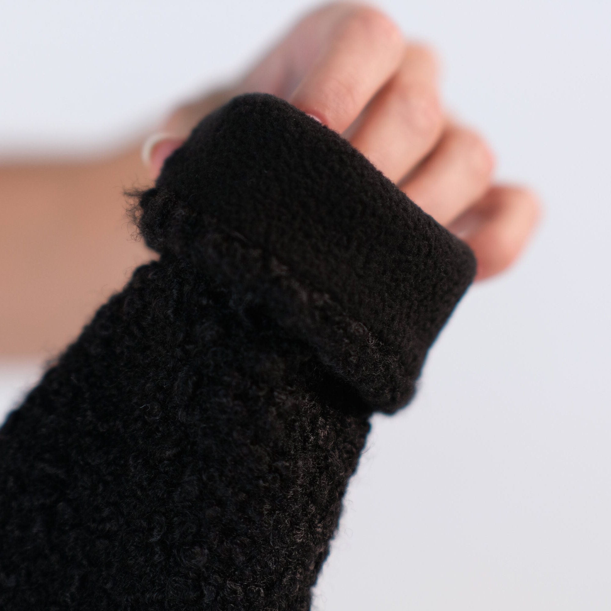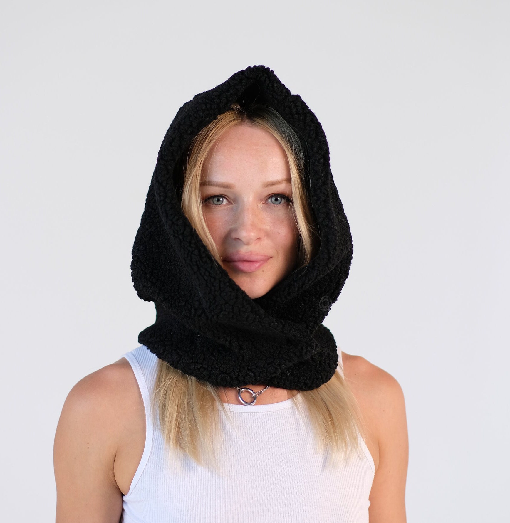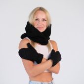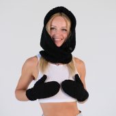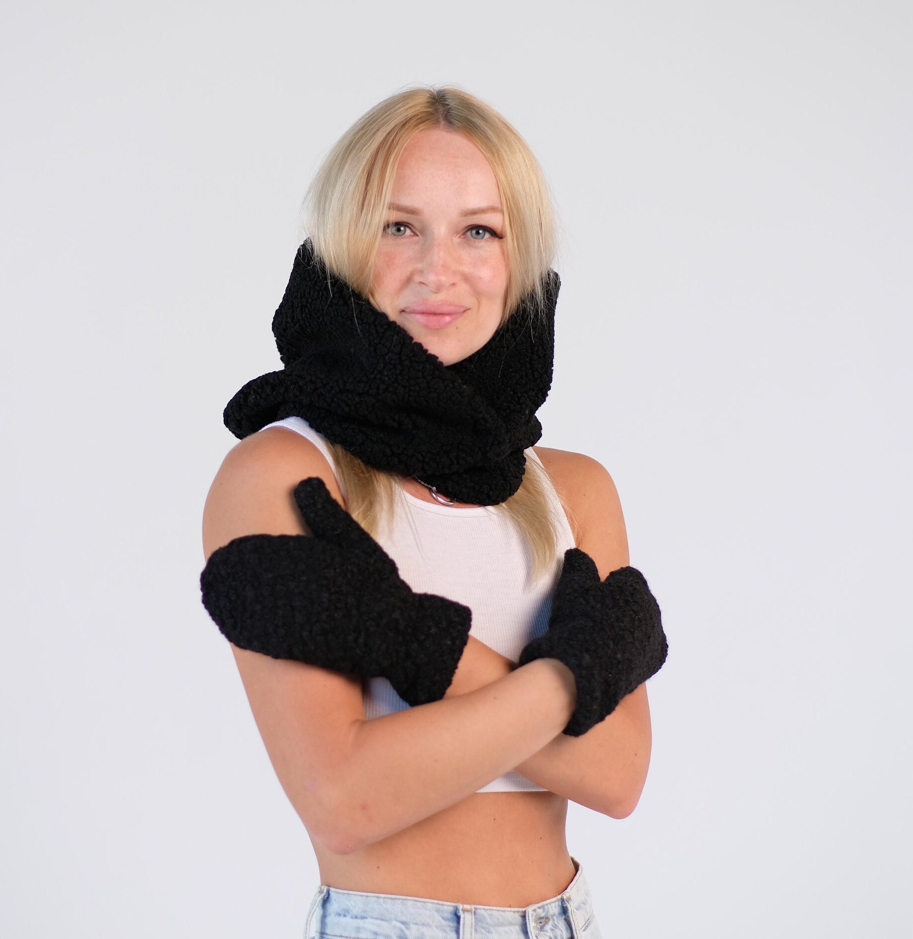 Hooded Scarf Mittens Set Women Sherpa Balaclava Fleece