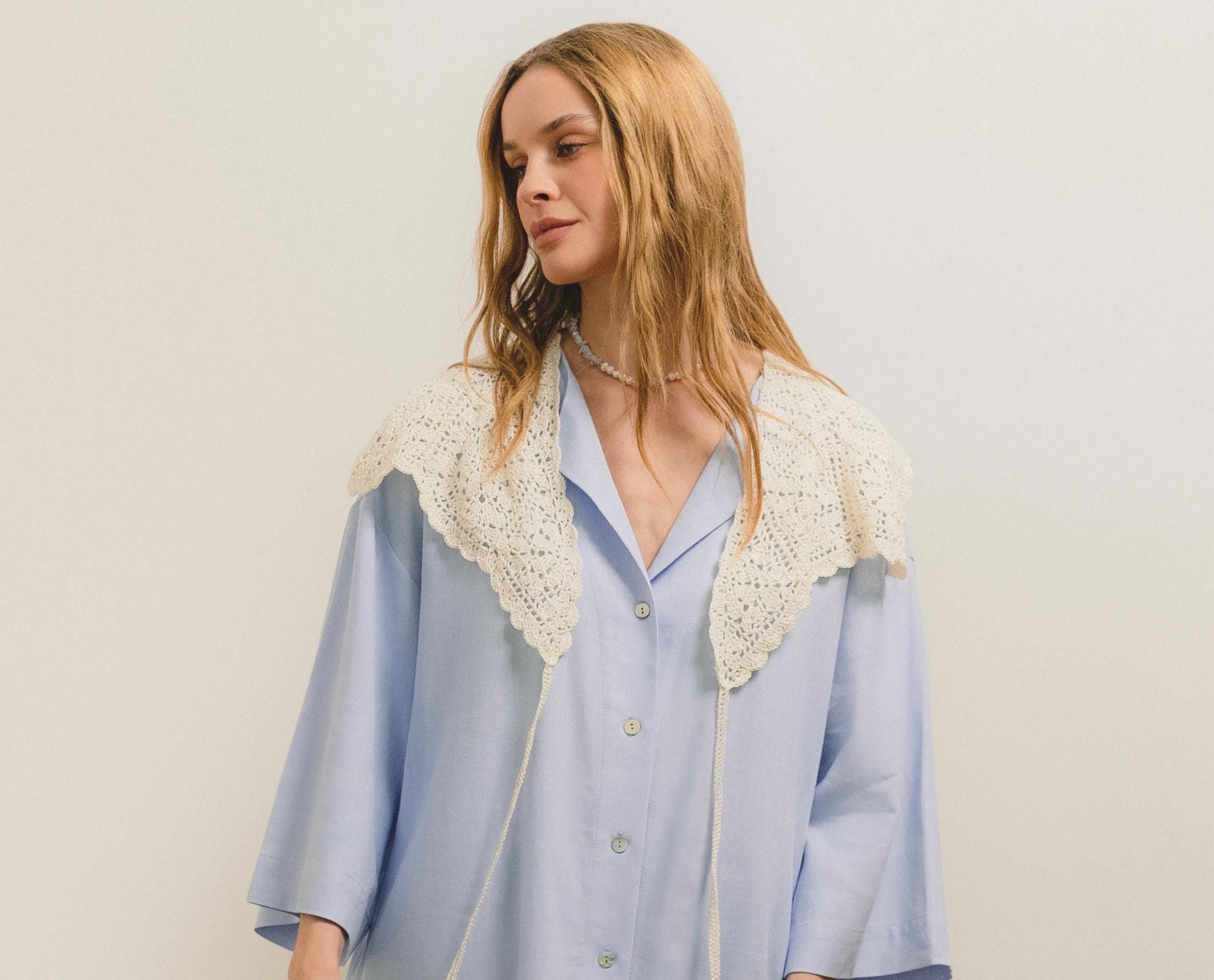 Milky Collar With Front Closure Tie, Dressy Collar Accessory, Removeable Neck Accessorize For Women, Openwork Peter Pan Collar Necklace