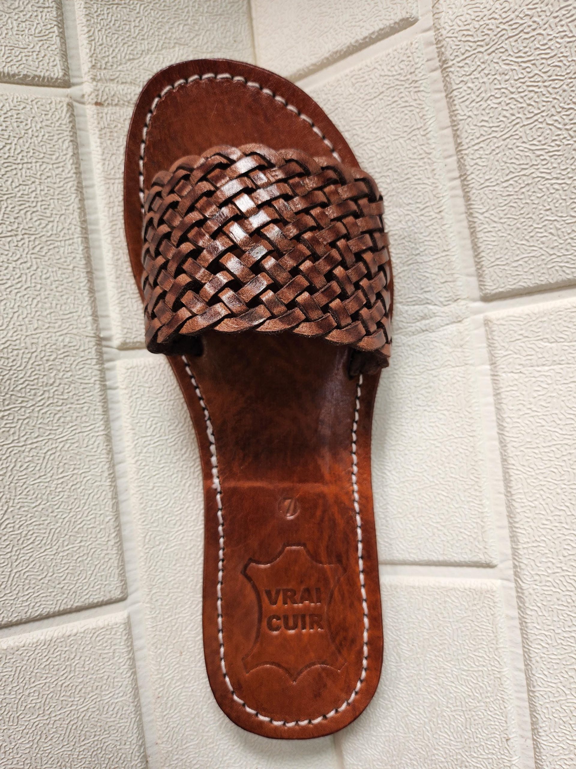 These Moroccan leather sandals are my original design, combining traditional craftsmanship with a modern touch for timeless style and comfort. Each pair is meticulously handcrafted in Marrakesh by my skilled production partner, Amina, using age-old leatherworking techniques to ensure exceptional quality and durability. Our collaboration supports local artisans, bringing you a unique product that honors the rich cultural heritage of Morocco.